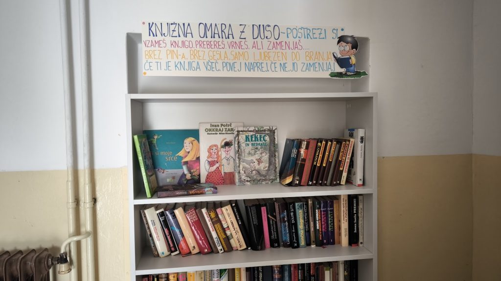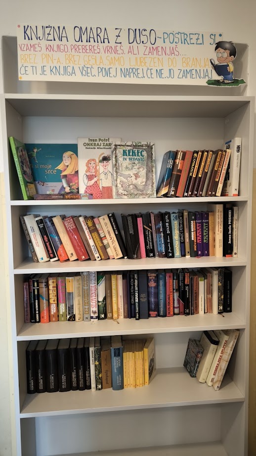 Knjižna omara z dušona Kosijevi ulici 1 v pritličju.